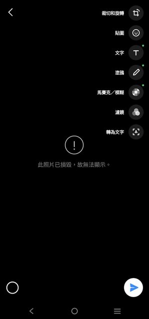 就是不能把我自己手機相簿裡的照片傳給別人(選完照片後就會變成此照片已毀損,故無法顯示)