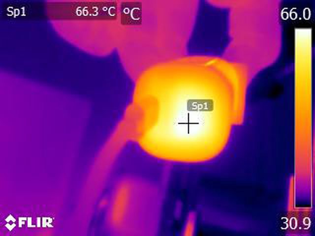 ▼110V輸入下輸出20V/3.3A維持31分鐘自動截止後本體的紅外線熱影像圖
