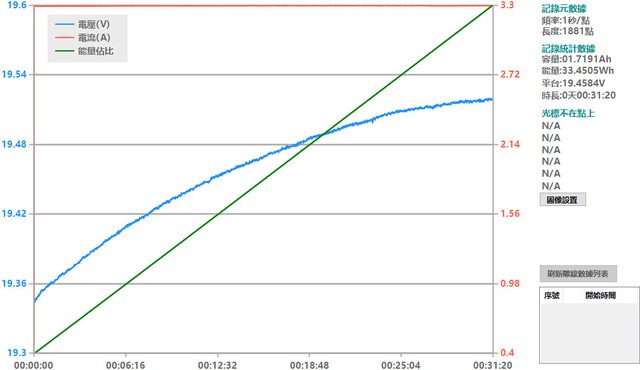 ▼110V輸入下輸出20V/3.3A維持31分鐘後,因為無法維持最大輸出,輸出自動截止