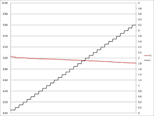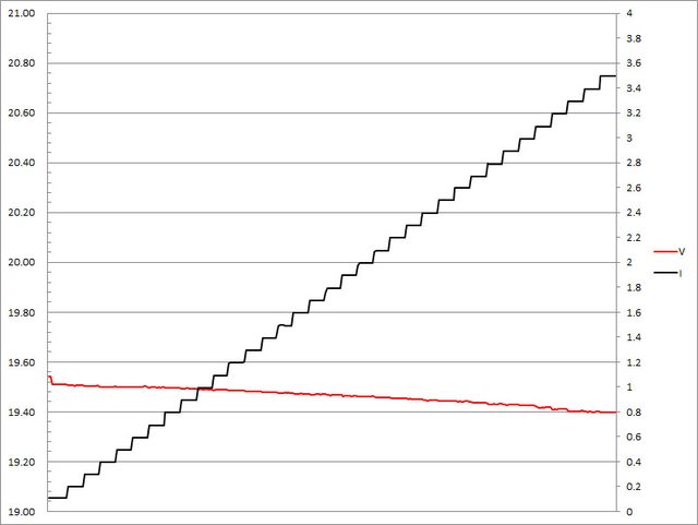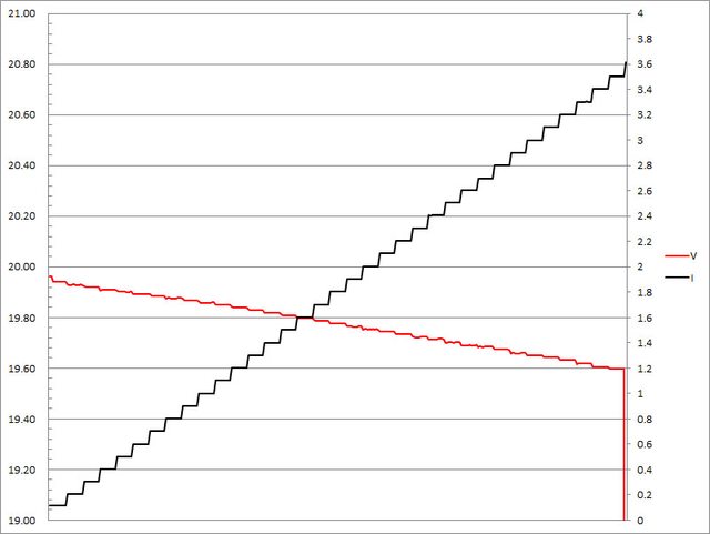 ,輸出電壓下降,輸出電流超過3.2A截止