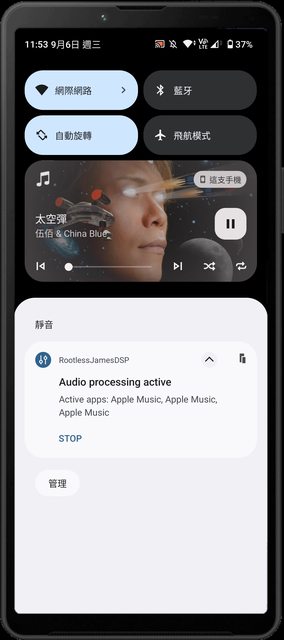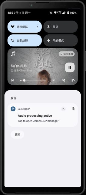 JamesDSP啟動後會顯示通知,如果你覺得很礙眼就長按關掉該通知類別。