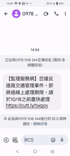 → parislove3 : 這類詐騙簡訊開不開RCS都會收到啊 11/05 22:22