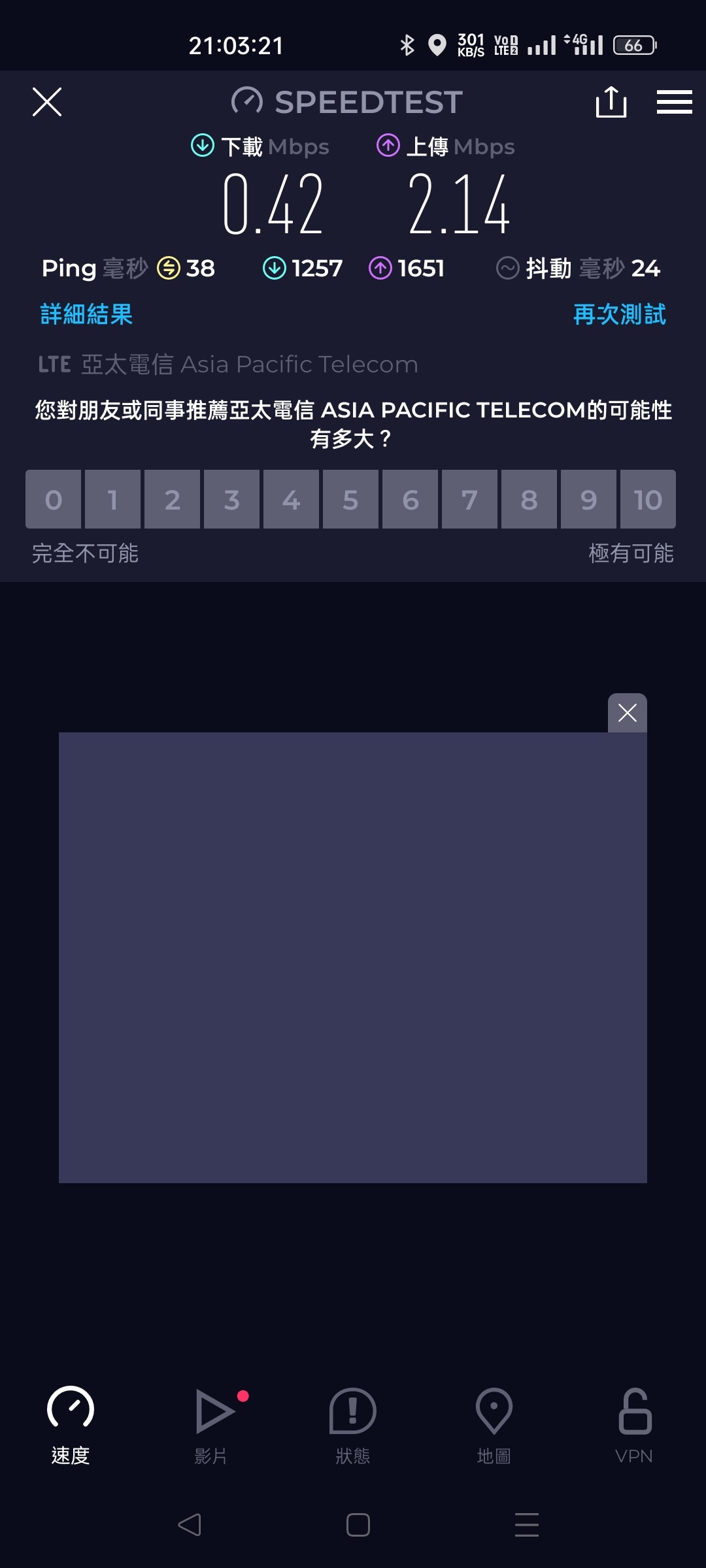 → zerhbbo78 : 問一下 亞太在雙北戶外網速會很差嗎 需求大概5~10M 11/13 20:46