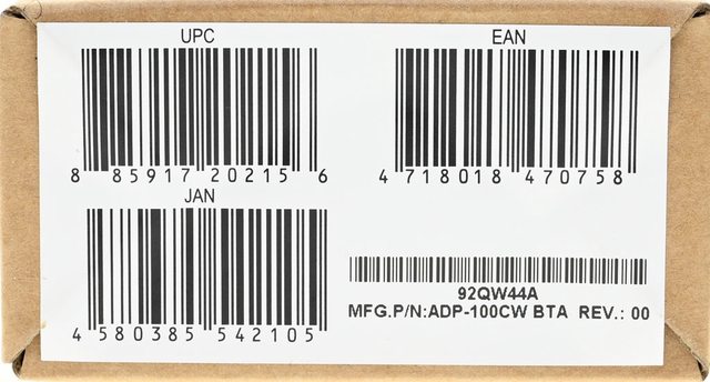 ▼其中一個較小的側面印上商標、A brand of DELTA字樣、型號、輸入/輸出規格、注意/