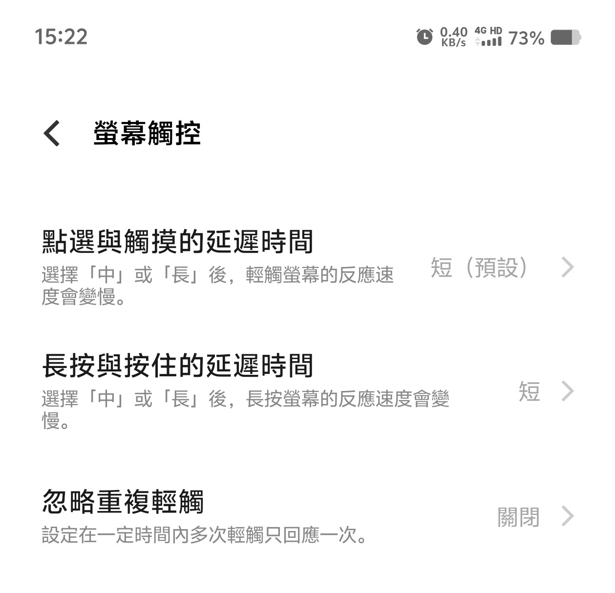 → twinmick : 設定 > 協助工具 > 互動與敏銳度 > 觸控設定裡面的 06/23 18:32