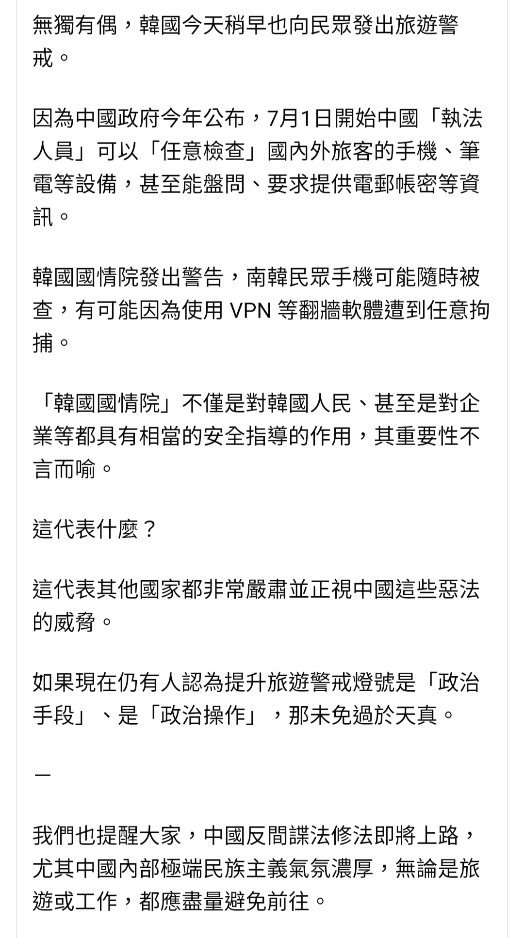 推 sam6503qpx : 南韓國情院發出旅遊警戒 警示7月1日起入境中國可能 06/29 12:41