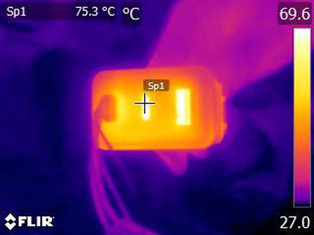 ▼C1輸出65W一小時後充電器的紅外線熱影像圖