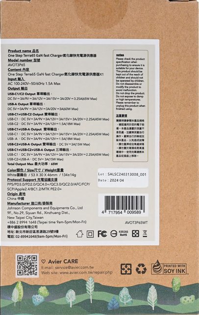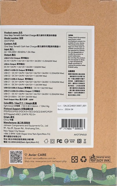 標題[心得] Avier One Step Terra65 GaN快速充電器