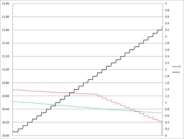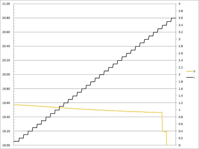 出電流超額時會先壓降,超過3.6A才會截止輸出