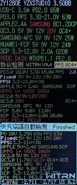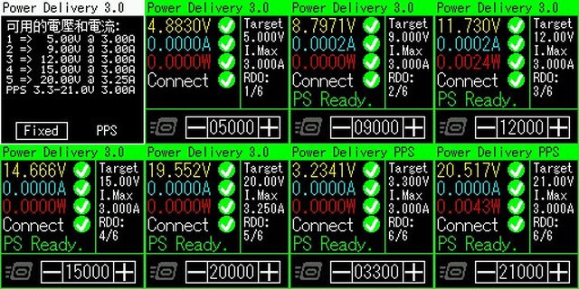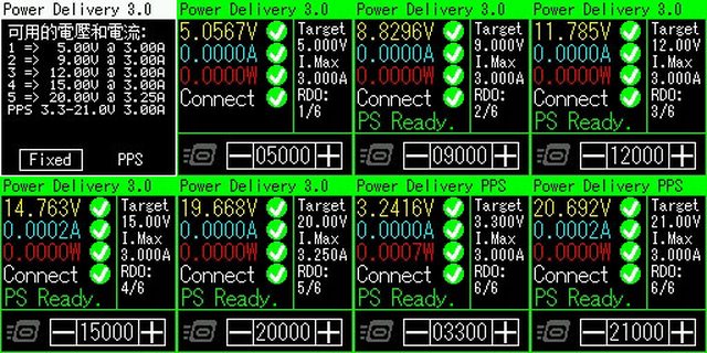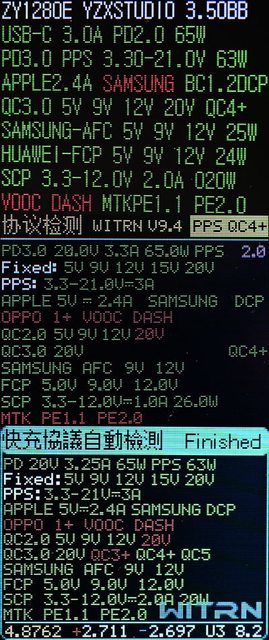 ▼多埠輸出下,C1分配45W,固定檔提供5V/3A、9V/3A、12V/3A、15V/3A、20V/2.25A,