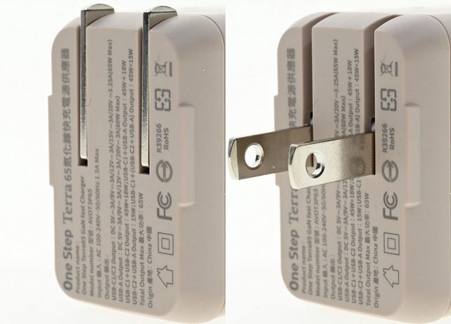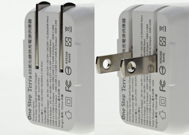 ▼Avier One Step Terra65雲霧白插頭採可摺疊設計