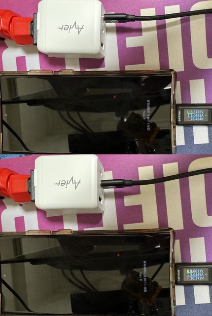 ▼連接低電量的Samsung S23 Ultra進行充電時,Avier One Step Terra65大地棕的C1/C2