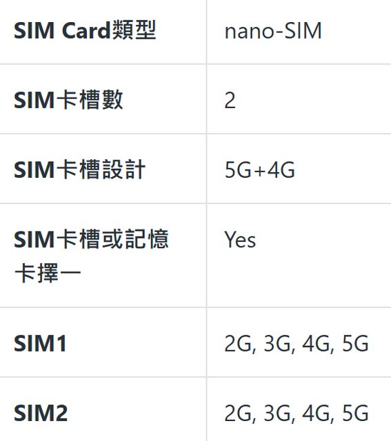 → aalittle : 他舊款有實體雙sim卡的官網是標Dual SIM (5G+4G) 07/23 10:44