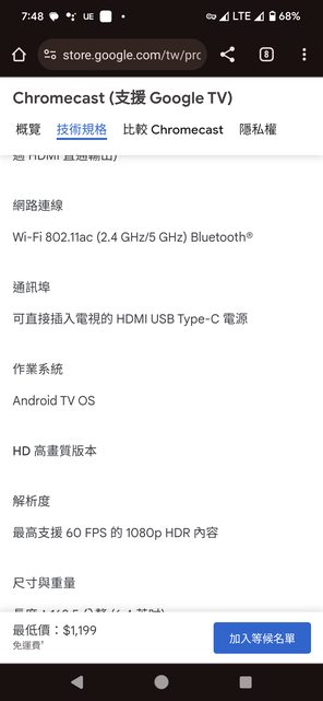推 bobo0314 : 兩週前才買Chromecast 4k,好險沒等,價格超過一倍 08/07 15:32