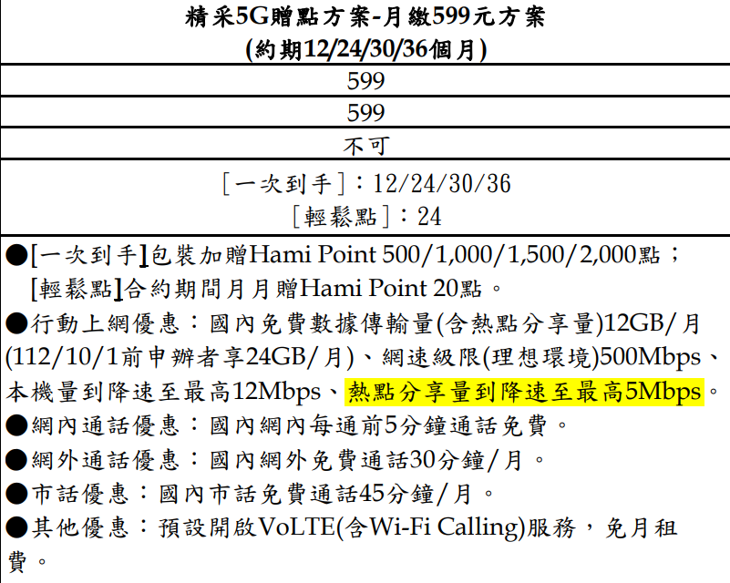 推 qulik7 : 當初辦的時候發現熱點剩5M,後來要求降為4G499 08/23 16:57