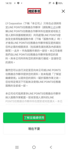請按「了解並繼續使用」,