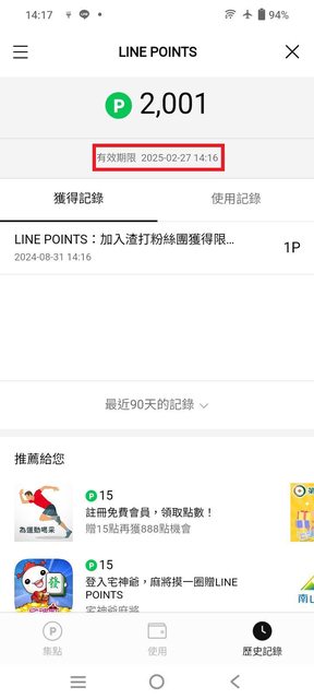 即可延展LINE POINTS點數有效期限。