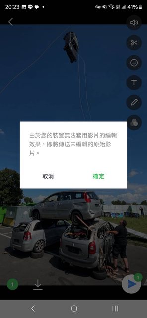 3.使用LINE傳自己相機錄影以外的影片, 都會出現無法套用編輯效果 我在其他手機從來沒有遇過這問題... 結果發現2020年就有人提出過完全一樣的問題!! https://www.ptt-web.org.tw/MobileComm/M.1603094792.A.4C8 有遇到相關問題的各位知道如何解決嗎? https://i.imgur.com/I6Y68US.jpeg
