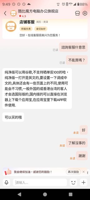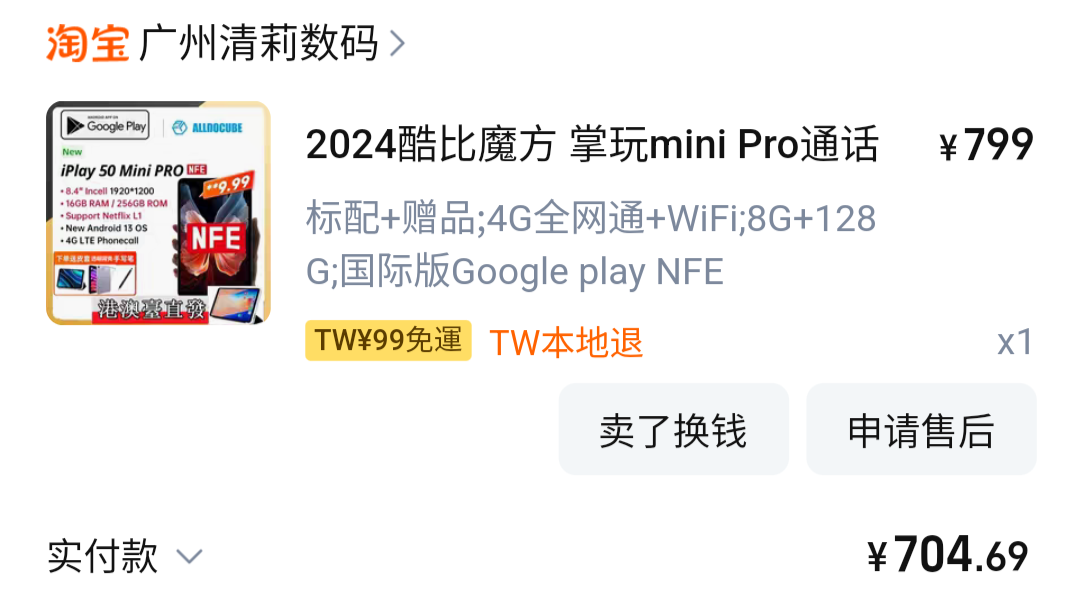 無意間在網路上開始注意Redmi Pad SE 8.7的情報, 本來想就近買的。(2999真的香) 後來爬文,逐漸開始物色其他平板,甚至寫信請教板友, 在多方面考慮自己的需求(龜毛)後,把目標換成了 iplay60 mini pro。 9/12託朋友在京東下標,9/20收到, 朋友很阿莎力的去掉尾數,得以用$4700入手。 買的時候,有向客服特地交代是要純淨版, https://i.imgur.com/tFTD1Nv.png