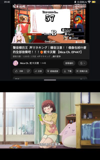 嗯,人家有杜比、我有杜賓,也算是可以的。 其他場合就拿來看ehviewer、看動畫瘋、看看YT實況… 附有的雙屏功能,可以同時看vtuber跟動畫瘋, 都沒什麼問題,還挺滿意的。 https://i.imgur.com/Q1Dih6D.jpeg
