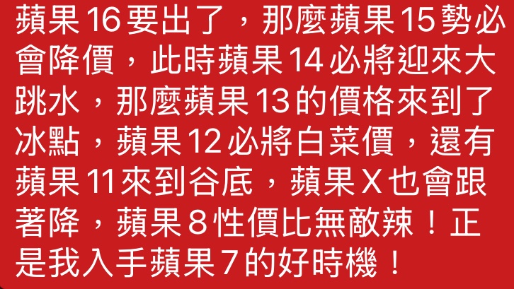 推 xluds24805 : 甜蜜點就是新機剛出時,舊機價格大跳水一整年的份呀 09/22 20:26