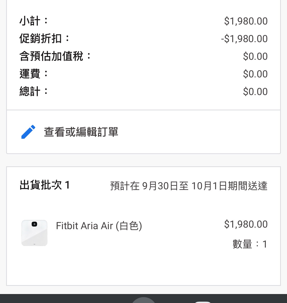 推 jl834021 : 剛剛結帳成功預計10月7日-8日 收到 09/27 07:05
