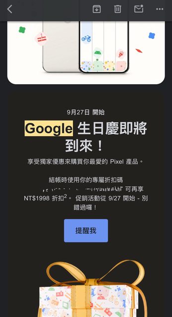 推 riverkid20 : 徵GOOGLE生日優惠券 09/26 22:10