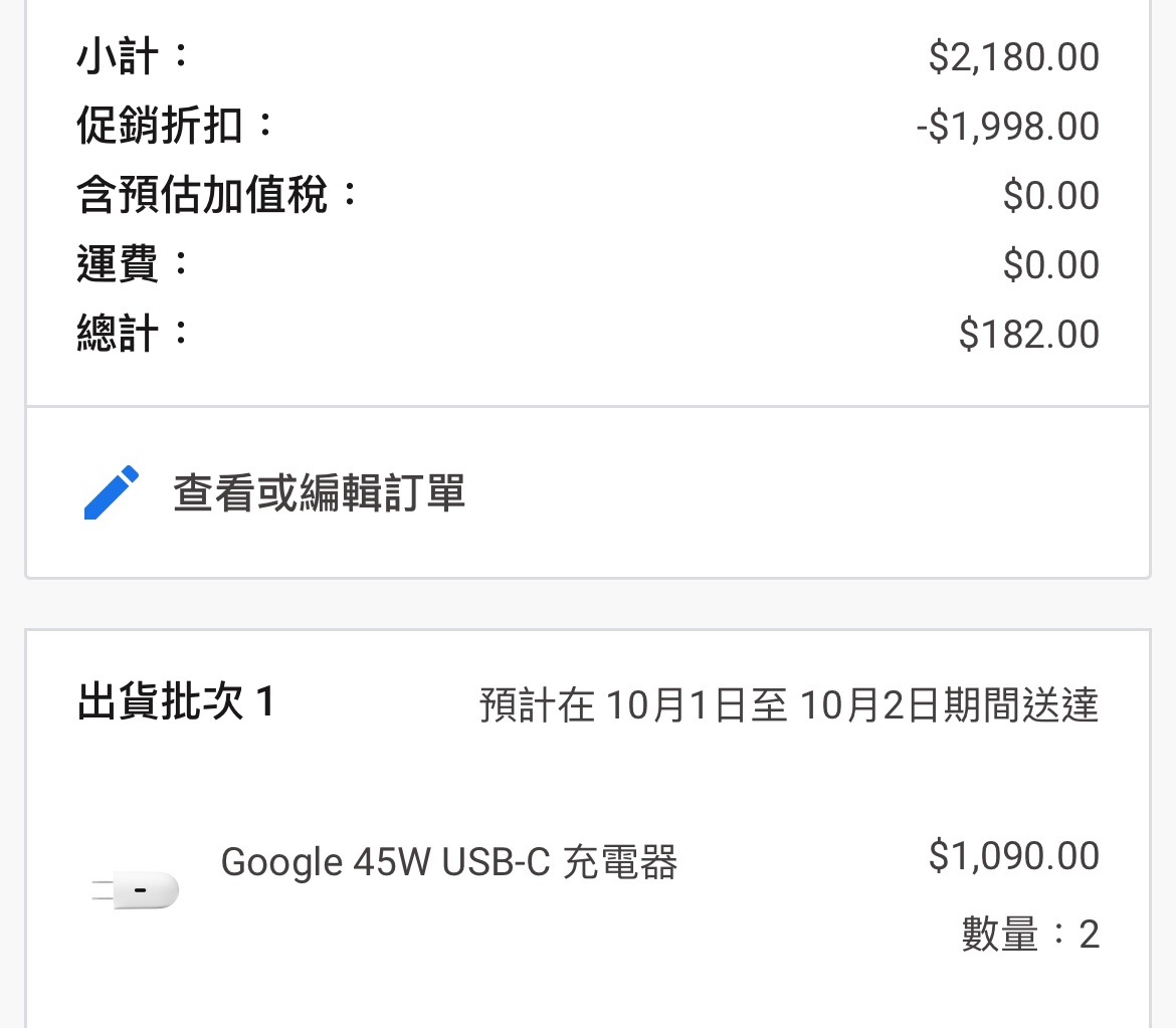 推 hangtenboy : 買了兩個45W充電器182元 09/25 15:29