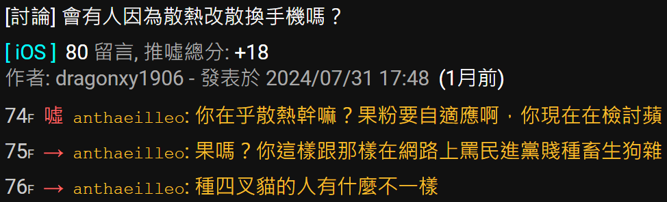 → mambaout414 : ?果粉在那邊優越以為自己手機不會發熱有夠好笑 09/27 12:37