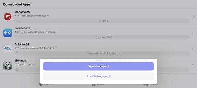 比如,我想安裝仿Android Tachiyomi的免費動漫畫APP:Mangayomi,就得側載IPA。