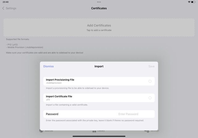 Feather安裝之後,到Feather Settings → Add Certificates匯入.p12檔案