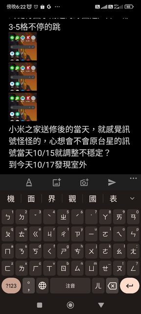 小米之家送修後的當天,就感覺訊號怪怪的,心想會不會原台星的訊號當天10/15就調整