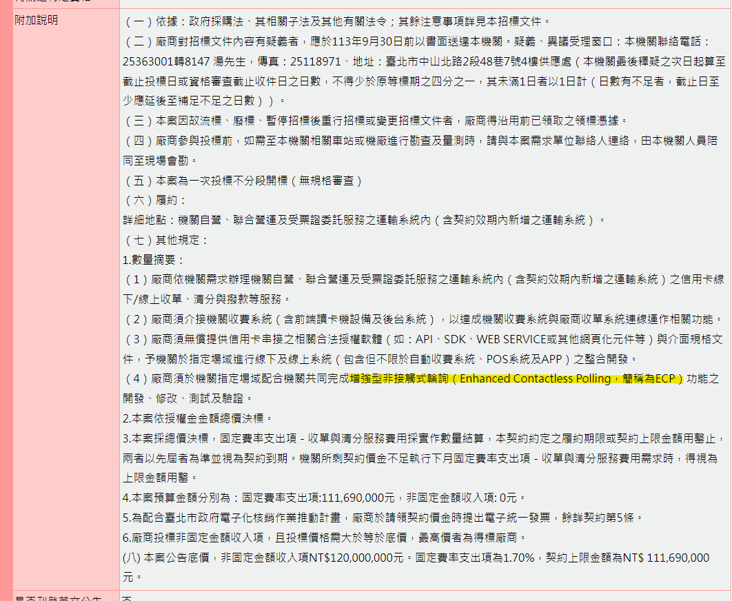 → mf15566 : 支付服務案的招標資料是有提到ECP,所以也許信用卡 10/24 20:34
