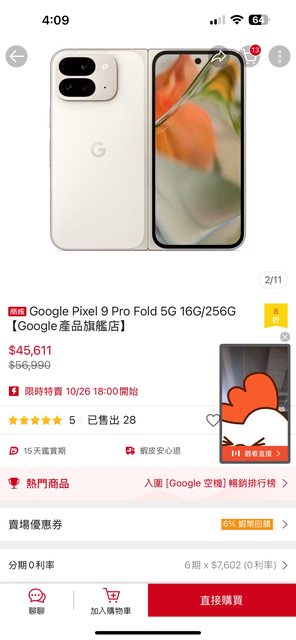推 moonya0927 : 現在蝦皮買Pixel fold還會送3980全站折價券10/26 10:53