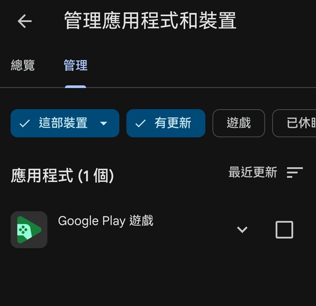 點進"google play 遊戲"的商店頁面,顯示是沒有更新