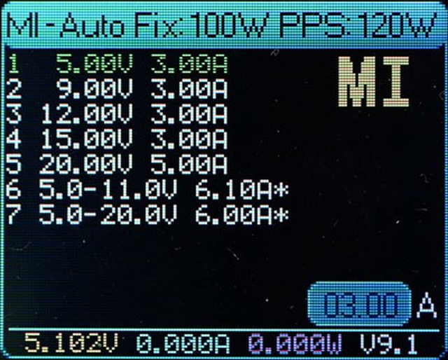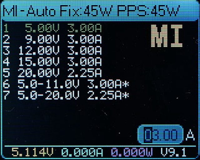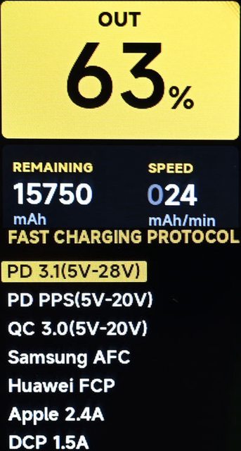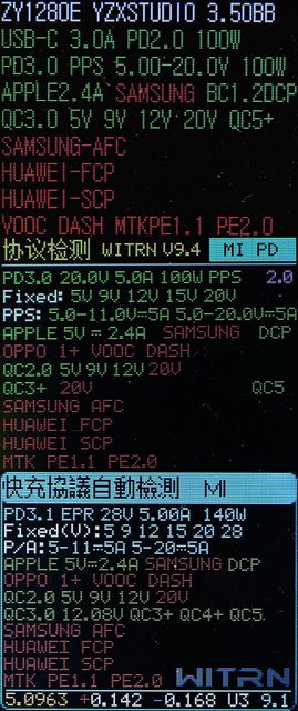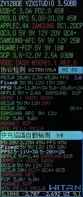▼輸出時按下按鈕可切換螢幕顯示輸出快充協議,黃色光棒為使用中的協議
