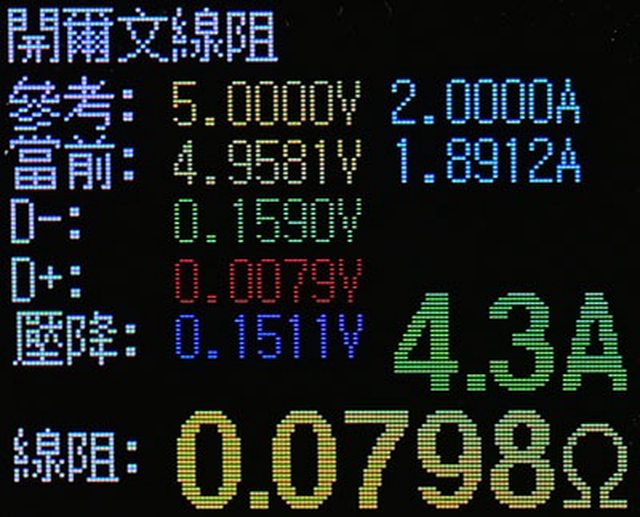 ▼USB-C to USB-C充電傳輸線等效阻抗為0.079Ω