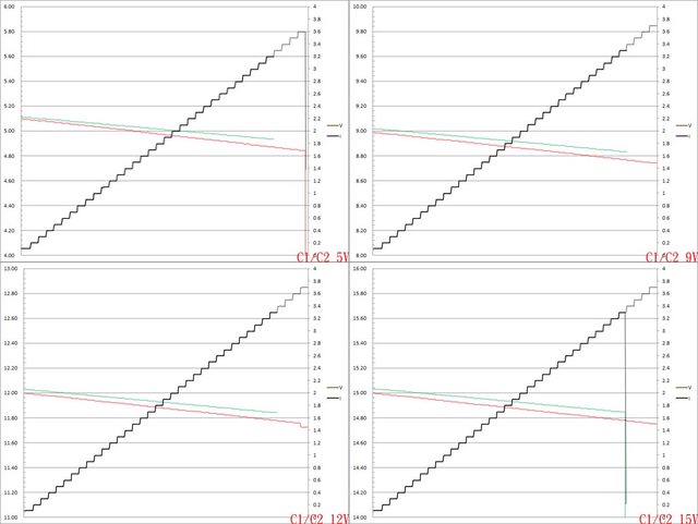 ,電流超過3.2A截止。第一組PPS檔11V電流增加時輸出電壓下降,電流超過3.2A截止。第