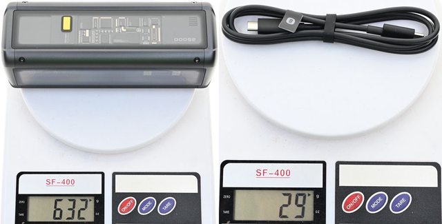 ▼行動電源重量632克,USB-C to USB-C充電傳輸線重量29克