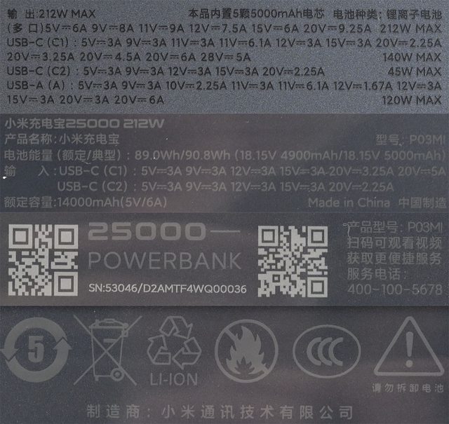 標題[心得] 小米行動電源25000 212W