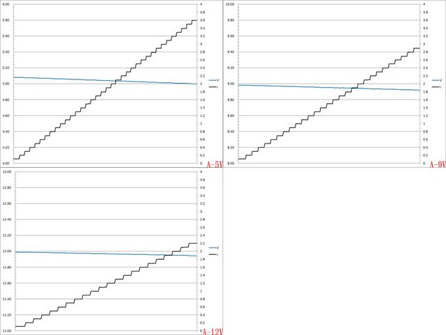 輸出電壓下降,電流超過3.2A截止