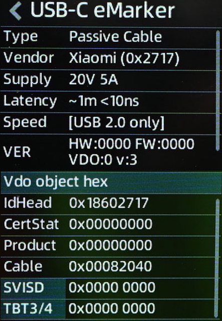 ▼USB-C to USB-C充電傳輸線E-Marker資訊,電力傳輸支援20V/5A,資料傳輸支援USB