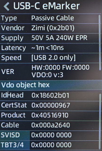 ▼USB-C to USB-C充電傳輸線E-Marker資訊,電力傳輸支援50V/5A 240W EPR,資料傳輸
