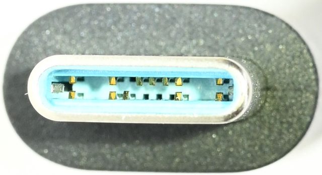 ▼USB-C to USB-C充電傳輸線的連接器內部為水藍色
