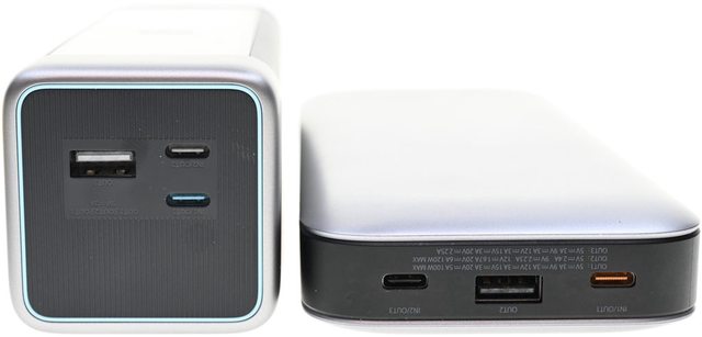 ▼CUKTECH酷態科20號行動電源25000 210W(左)及紫米20號行動電源(右)頂部輸出埠比較