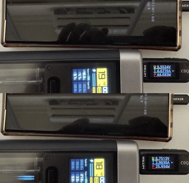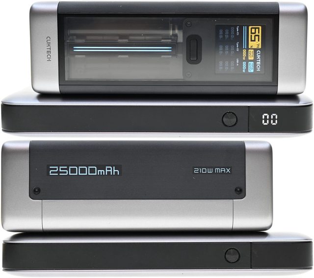 ▼CUKTECH酷態科20號行動電源25000 210W(上)及紫米20號行動電源(下)顯示螢幕與側面