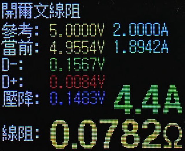 ▼USB-C to USB-C充電傳輸線等效電阻為0.078Ω