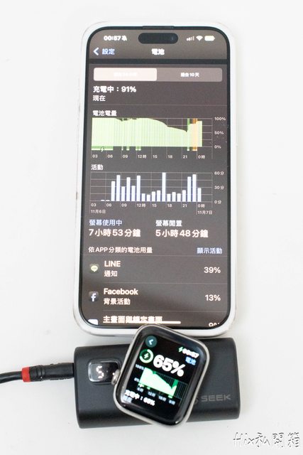 這樣早上起床時,行動電源+手機+手錶都同時充好電