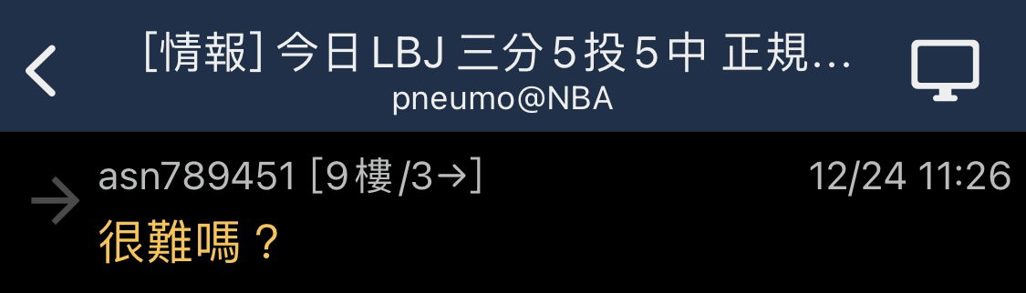 venter125 : 今天的LBJ沒特別刷數據吧 有切入 有上身體 還有三分 12/24 13:13