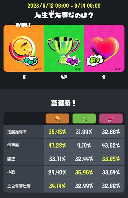 推 chenali: 我也是選財富,感覺對戰幾乎都對到愛還有自己人,看來愛 08/14 11:20